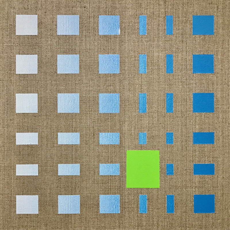 Green square in faded blue to white squares, 2016