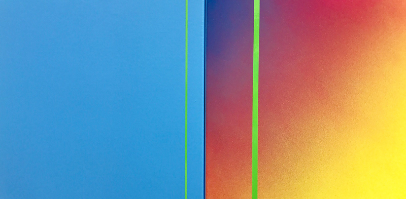 Green on faded yellow orange and blue, 2017