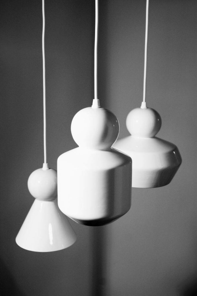 The ensemble of pendant lamps looks like hanging three dimensional pictograms or icons that were brought to life in order to picture a love triangle or a love affair. Definitely a delicate detail when it comes to interior design.